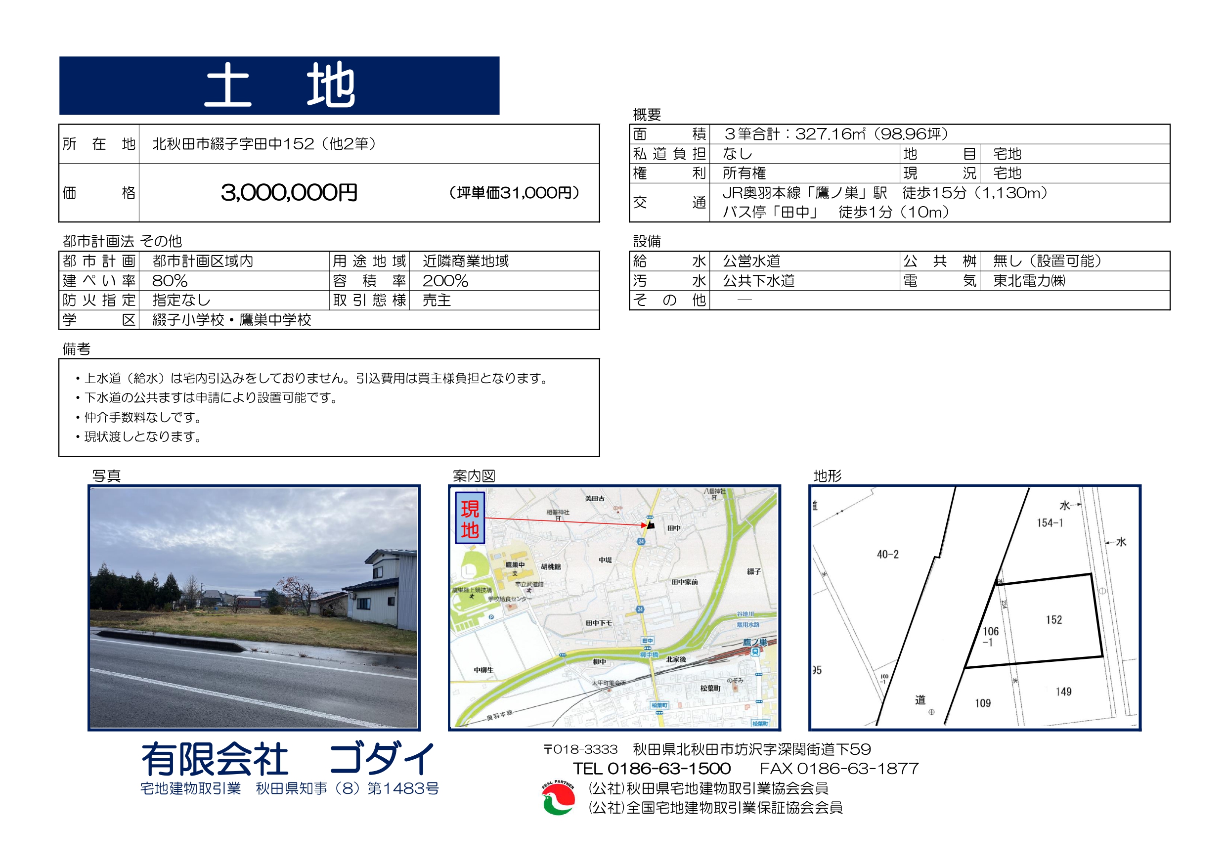 土地 北秋田市綴子字田中 | 北秋田市の不動産はゴダイへ