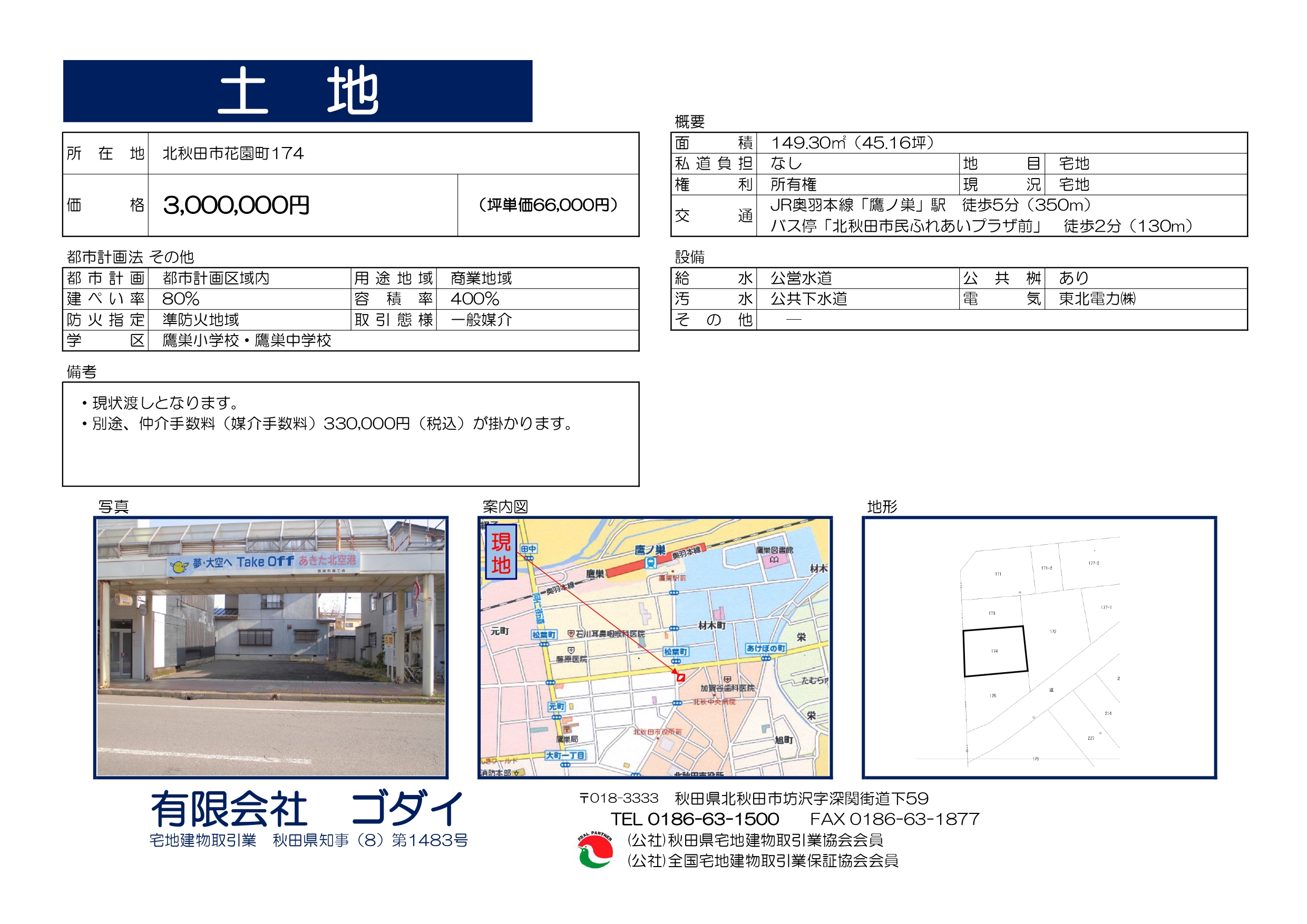 土地 北秋田市花園町 | 北秋田市の不動産はゴダイへ