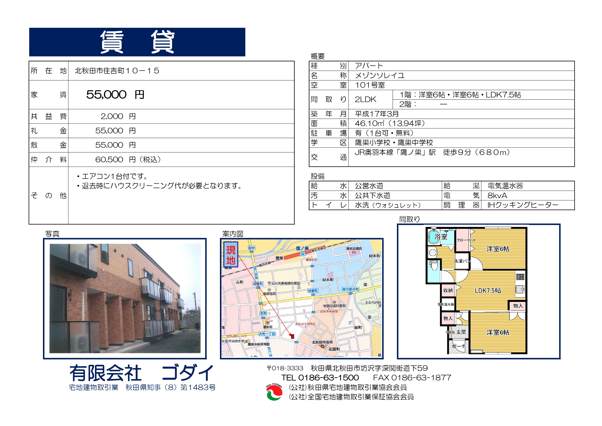 メゾンソレイユ 1階 | 北秋田市の不動産はゴダイへ