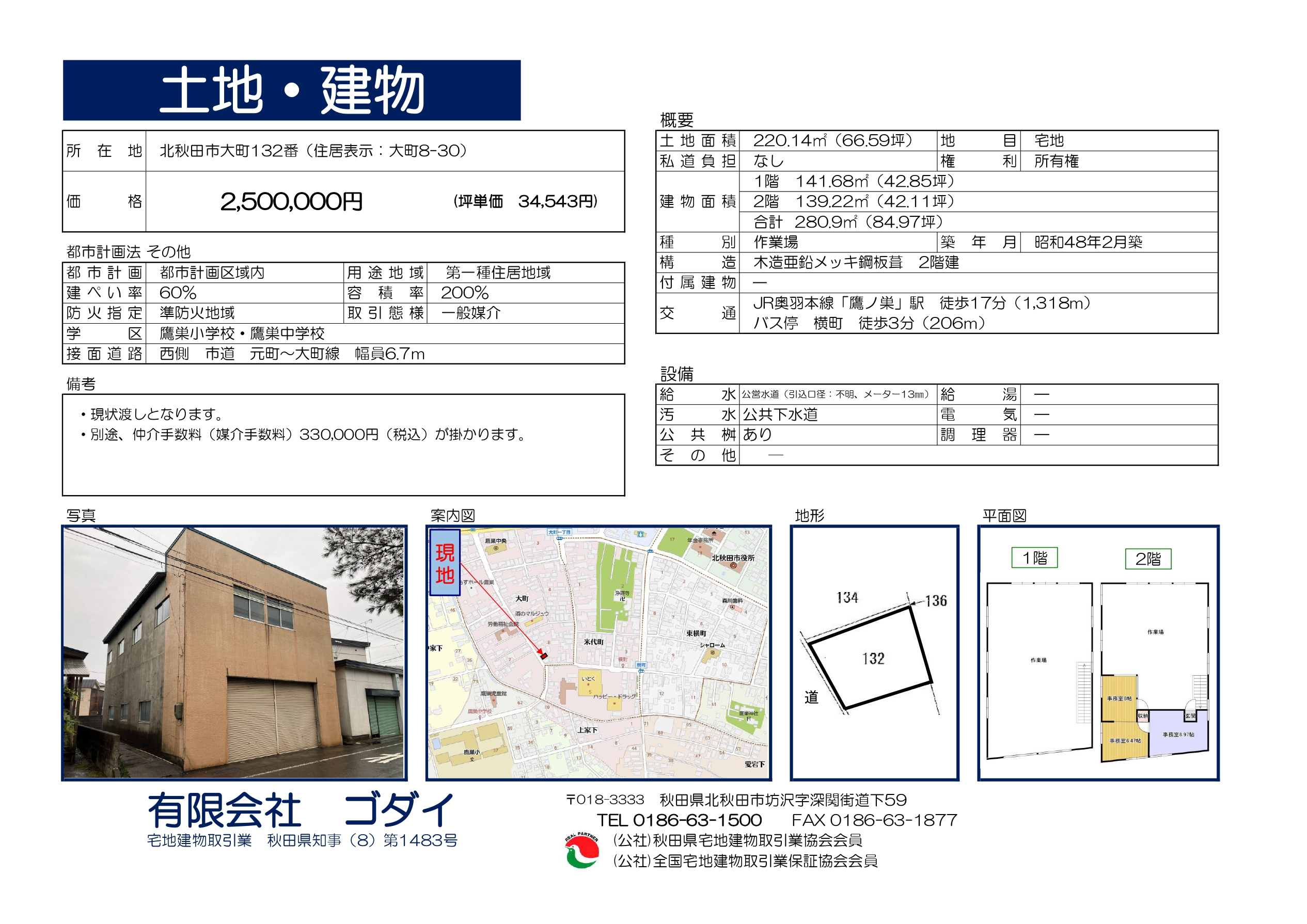 中古作業場 北秋田市大町 | 北秋田市の不動産はゴダイへ