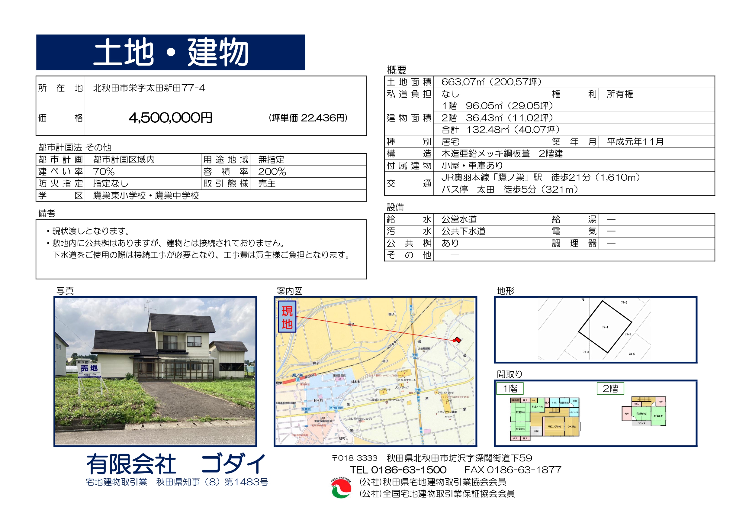 中古戸建 北秋田市栄字太田新田 | 北秋田市の不動産はゴダイへ